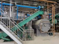 層蝶式汽提塔是國內(nèi)浸出油廠使用較多的一種汽提設備。若按照水蒸氣對混合油的汽提次數(shù),層蝶式汽提塔可分為單段式和雙段式兩種。雙段蝶式汽提塔,它主要有頂蓋、上塔體、中塔體、下塔體以及底蓋所組成。在上塔體和下塔體內(nèi)各有6-9組碟盤。每組碟盤都由滯流盤、錐形分配碟和環(huán)形分配碟組成。上、下塔體的外殼均裝有夾套,在夾套中通入343-441kPa的加熱蒸汽對塔內(nèi)的混合油進行間接加熱。中塔體和底盤內(nèi)各有一組直接蒸汽噴入裝置。這組裝置由集油盤、導流管、中心管、直接蒸汽噴管組成。來自第二蒸發(fā)器的混合油,進入層蝶式汽提塔的進油管之后,自上而下逐次流經(jīng)每一組碟盤。到達中塔體的集油盤底的阻攔,被汽提出的溶劑蒸汽和水蒸氣繞過集油盤向上移動,而油被阻留落下。之后,混合油又沿著下塔體內(nèi)的各組碟盤逐次流下,到達底蓋內(nèi),在直接蒸汽噴入裝置中又一次被汽提,汽提出的溶劑蒸汽和水蒸氣自下而上逐級通過每一組碟盤的空隙,與碟盤表面流下的液膜狀混合油充分接觸,使混合油得到進一步汽提。到達頂部的混合蒸汽通過出氣管進入汽提冷凝器。經(jīng)汽提后的浸出毛油從底部的出油管通過液封裝置排出。層蝶式汽提塔結構較為簡單,操作方便,工藝效果好。但是必須注意的:每一組碟盤的制造質(zhì)量和是否水平安裝,將影響混合油液膜的形成與氣液相接觸的面積;直接蒸汽含水,會造成毛油中磷脂的析出;直接蒸汽壓力過高或者用量過大,會形成液泛現(xiàn)象;混合油中含雜太多,則使汽提塔碟盤表面的結垢現(xiàn)象嚴重,毛油質(zhì)量降低;若采用多段式,應使上層直接蒸汽壓力低于下層。直接蒸汽好采用低壓過熱蒸汽。層蝶式汽提塔在檢修時碟盤的清理比較麻煩。